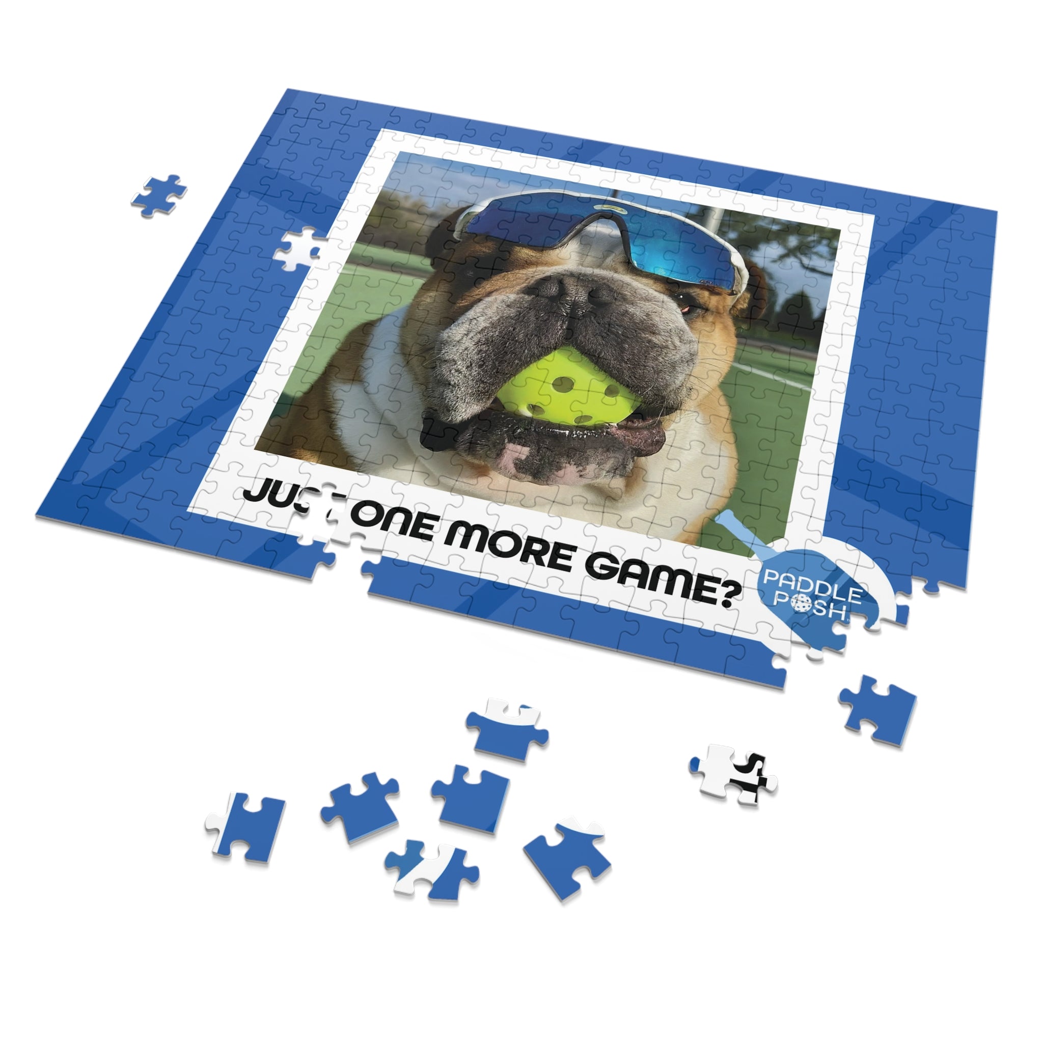Enjoy quality time with family and friends while solving this fun pickleball puzzle featuring an English Bull Dog. Perfect for pickleball and dog lovers, this puzzle comes in a gift-ready metal box for a show-stopping presentation. Ideal for ages 4+.